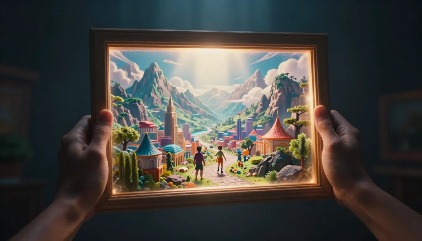 第一步:输入简短描述。 不需要详细、不需要专业术语。就像跟朋友聊天一样描述你的画面想法。"一片夜晚的魔法森林""一个有飞行汽车的未来城市""一个有猫咪的温馨阅读角"——随意、简单、口语化就行。